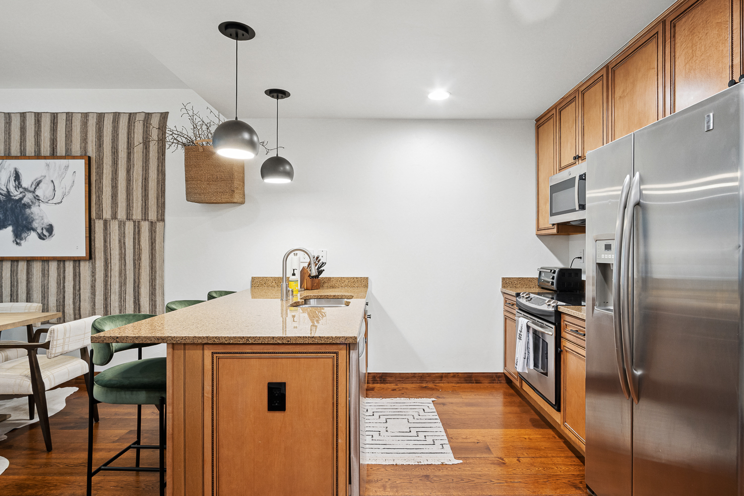 Bright and beautifully furnished luxurious Bluesky Condominium with recent updates. Adjacent to the Snowflake Lift this property is truly a hidden gem. Enjoy all the amenities that Bluesky has to offer: pool, hot tubs, game room, fitness center, steam showers, full-service on-site spa, and ski rental shop. Enjoy après ski in the tavern or take an easy stroll to all that Main Street has to offer. Wonderful rental property or second home.